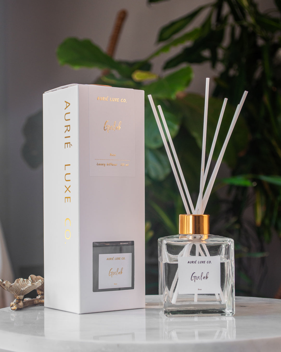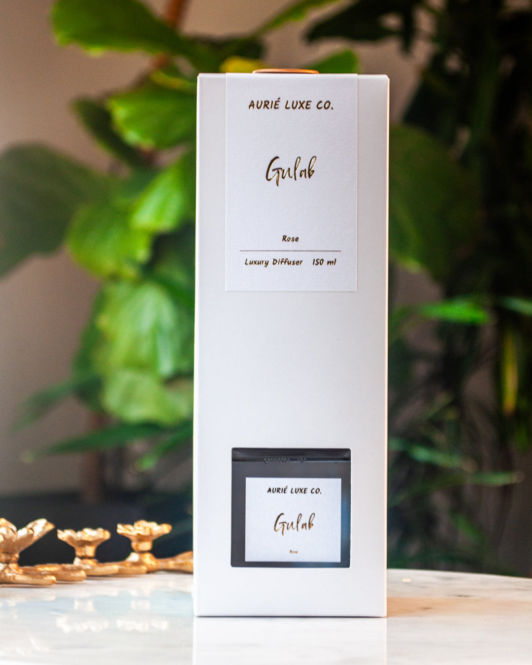 Classic and romantic, Gulab captures the rich, velvety scent of blooming roses — a timeless fragrance rooted in South Asian heritage. This elegant diffuser fills your space with a soft, lingering aroma that feels both luxurious and familiar, offering a flame-free way to indulge in floral serenity.