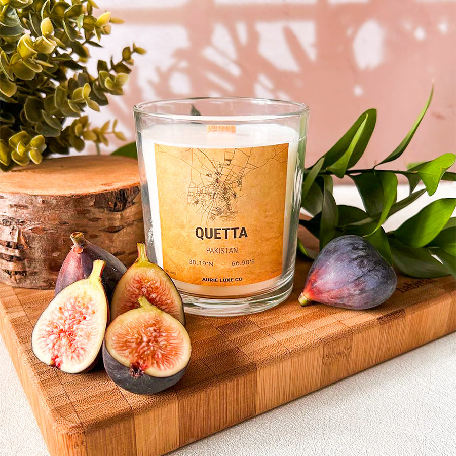 Inspired by Quetta’s rugged beauty, the Quetta candle captures the spirit of this mountainous city with a blend of figs, bergamot, and ylang ylang. The lush scent of figs opens the fragrance, followed by zesty bergamot that evokes crisp mountain air. Ylang ylang adds exotic floral notes, creating a warm and complex aroma.
